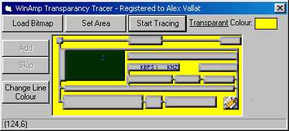 This program will take a bitmap and edge trace it to produce an output text file in a format compatible with WinAmp Transparancy Region definition files (region.txt). It was written for WinAmp skin designers who want to add transparancy effects, but do not want to go throught the bother of manaully defining all the points necessary to create the effect, or use one of the manual drawing tools available.